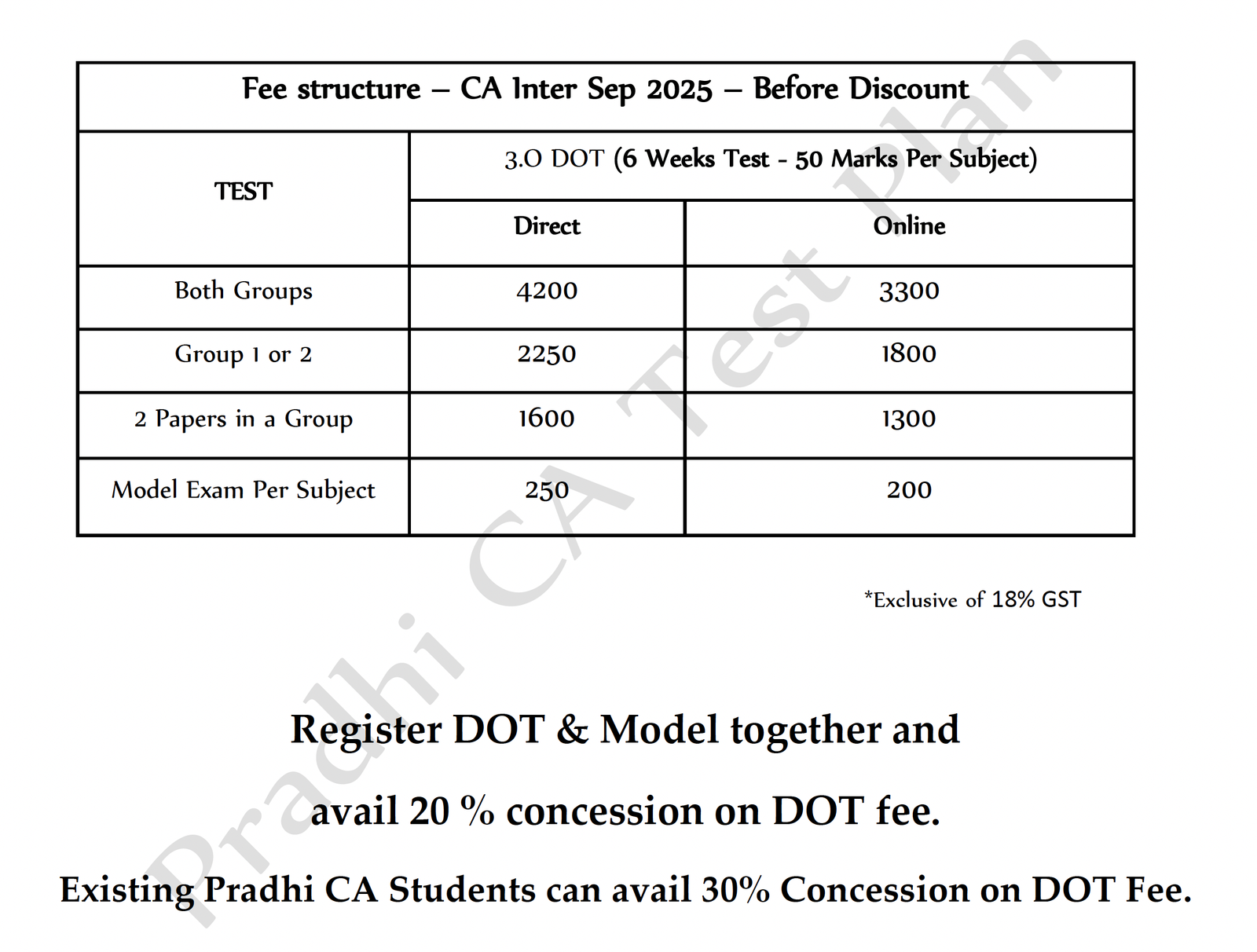 Exams will be conducted as per ICAI New Scheme (30 : 70 Pattern followed). QPs are prepared in Par with ICAI Standard.