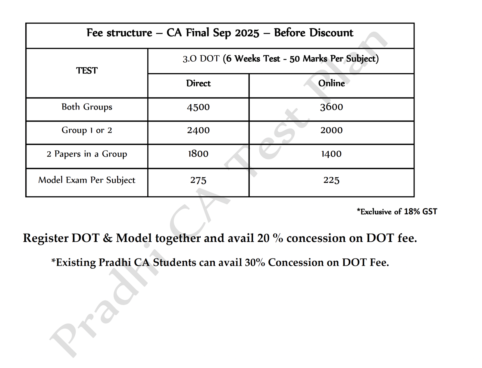 4 Model Exams will be conducted. 2 Sets for Weekend Batch and 2 sets for Alternative Days Batch. Unscheduled Option also available for Registration. Check the Dates in the Image (Schedule) given below.